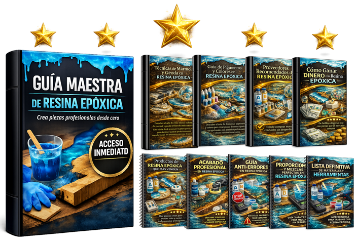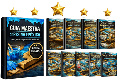 Recibirás una biblioteca completa sobre resina epóxica, compuesta por guías prácticas, manuales visuales y explicaciones paso a paso para dominar cada etapa, desde la mezcla hasta el acabado profesional.